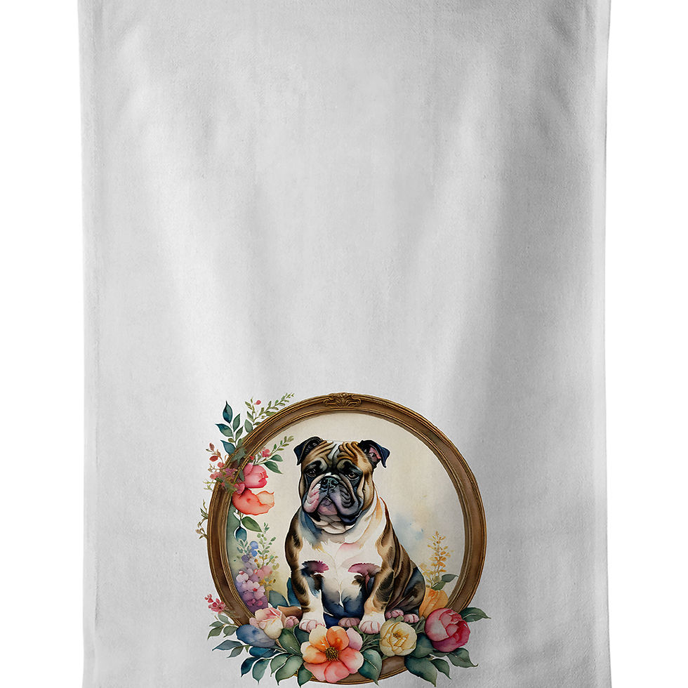 English Bulldog and Flowers Kitchen Towels �C Set of 2, Soft & Absorbent